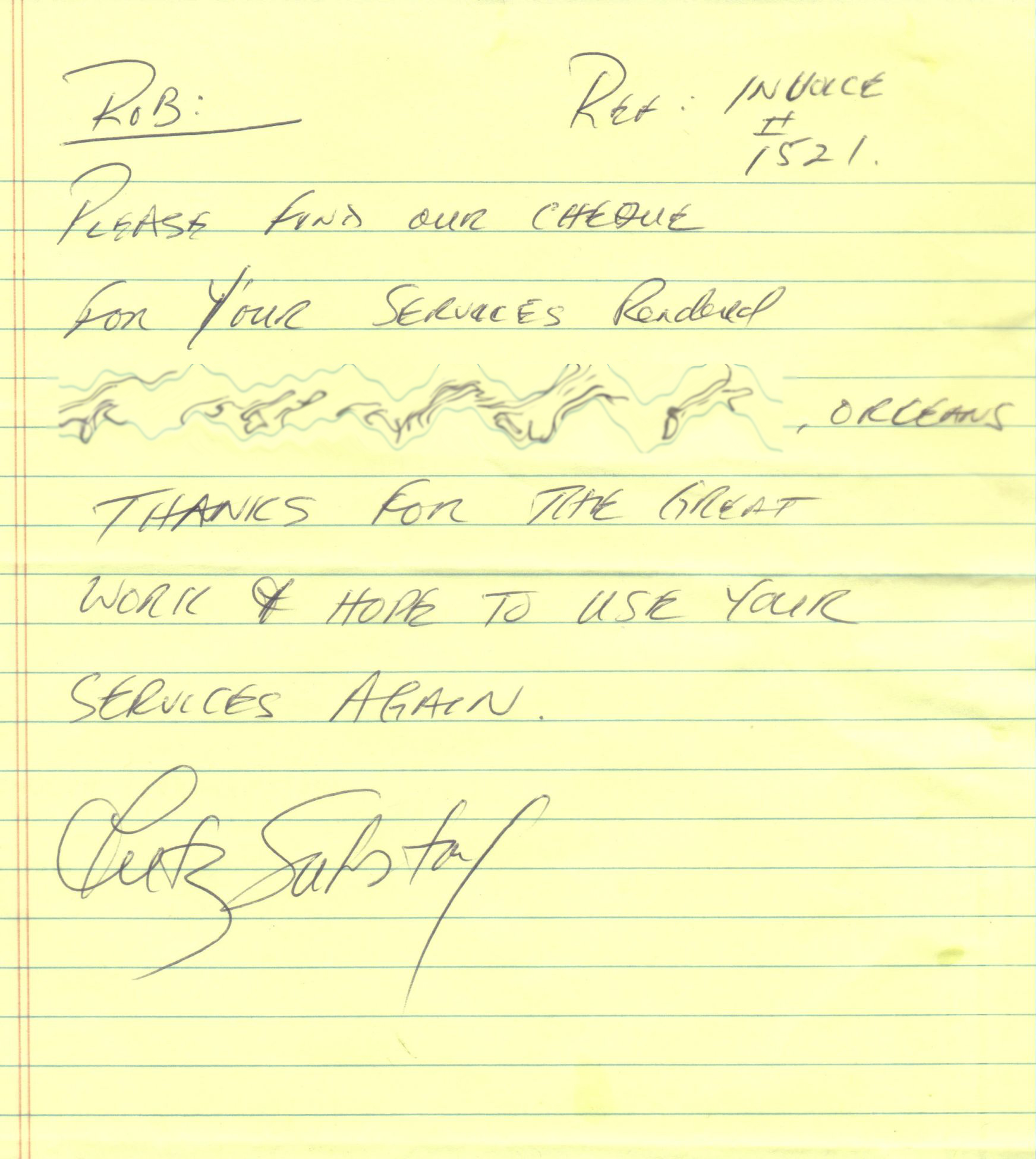 Please find a cheque enclosed for the services rendered. Thanks for the great work & I hope to use your services again.
